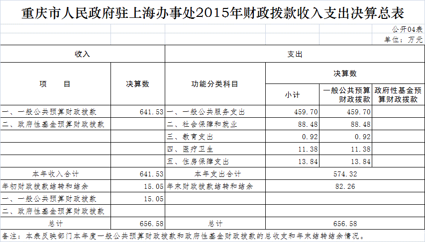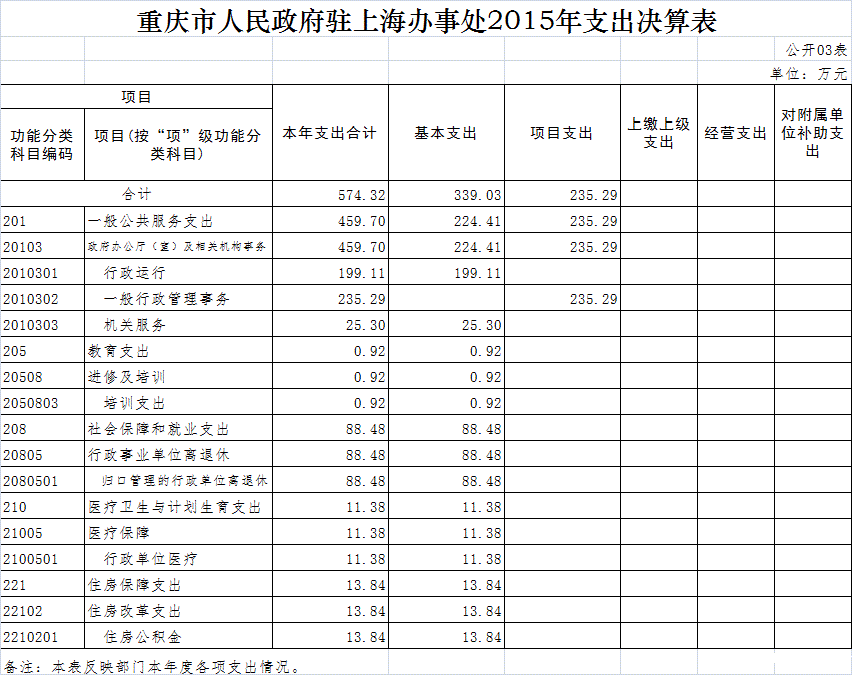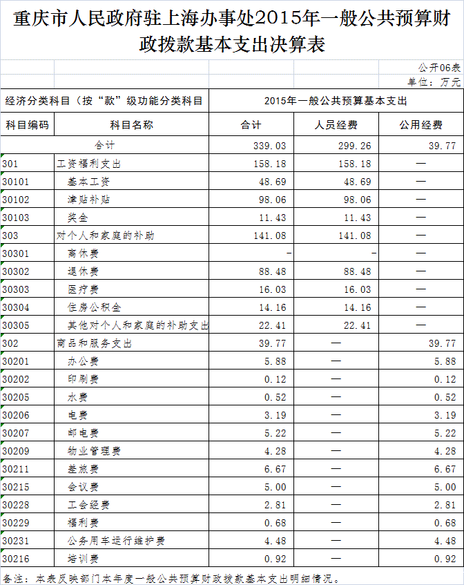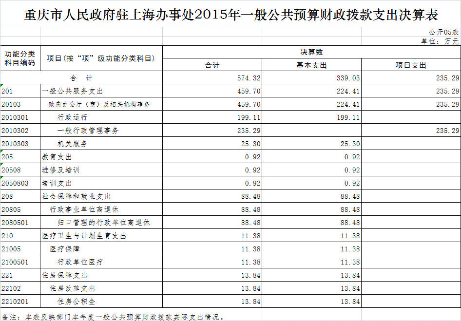 重庆市人民政府驻上海办事处2015年部门决算情况说明