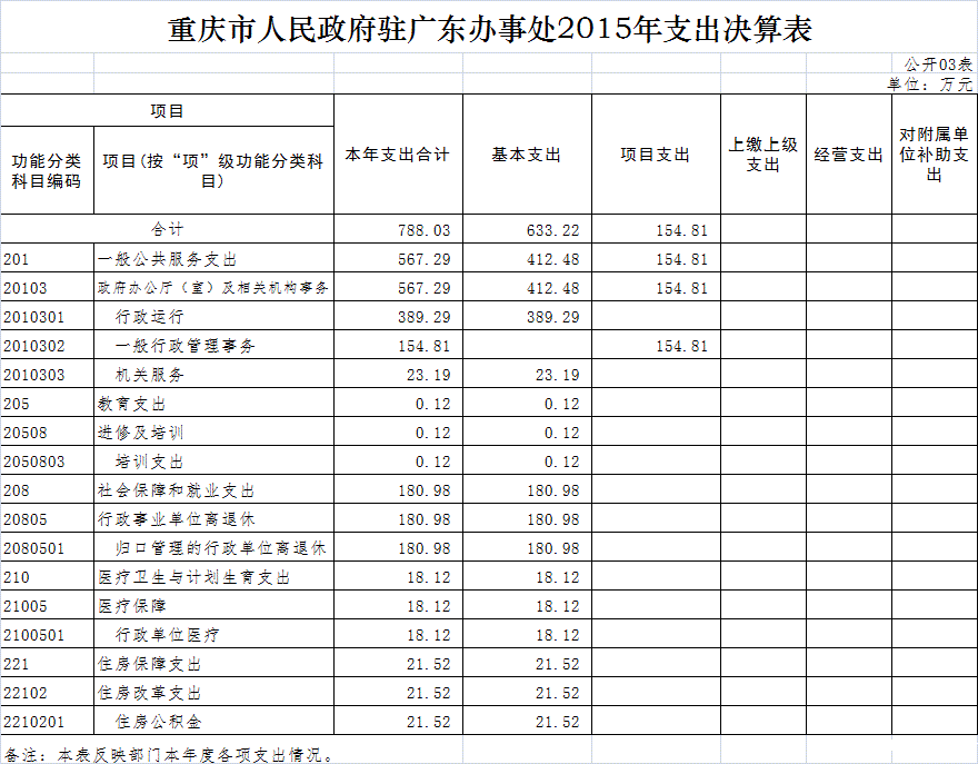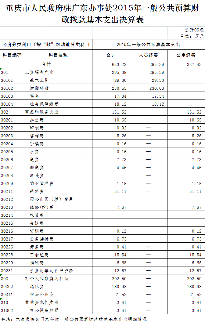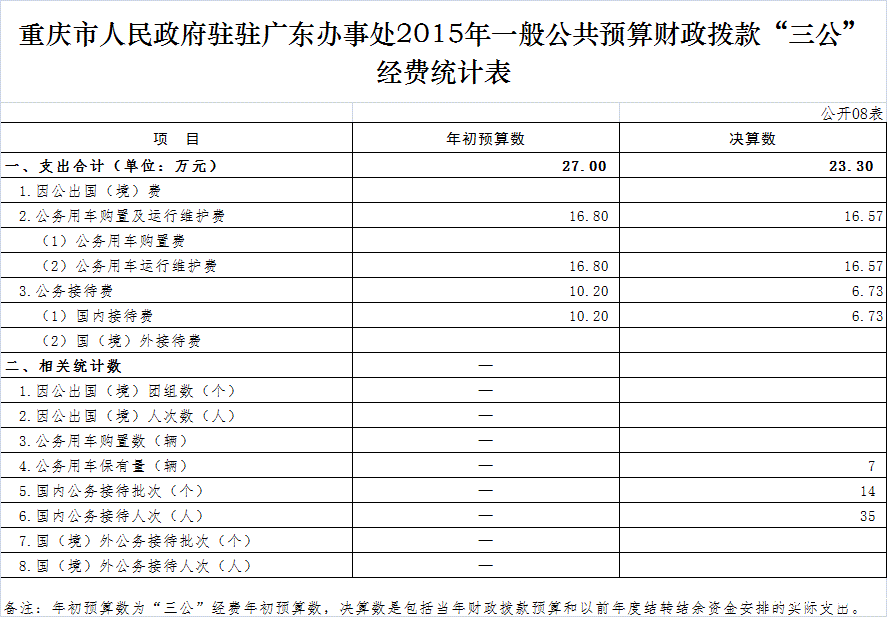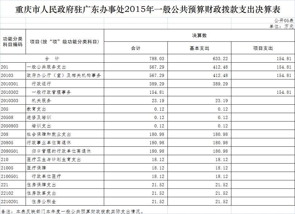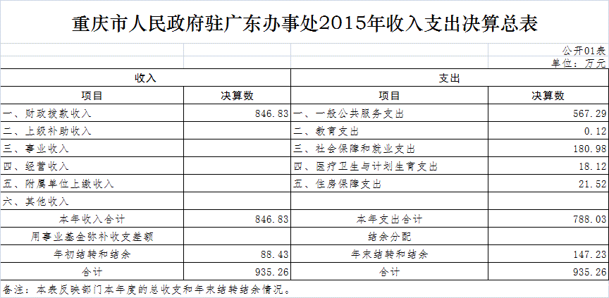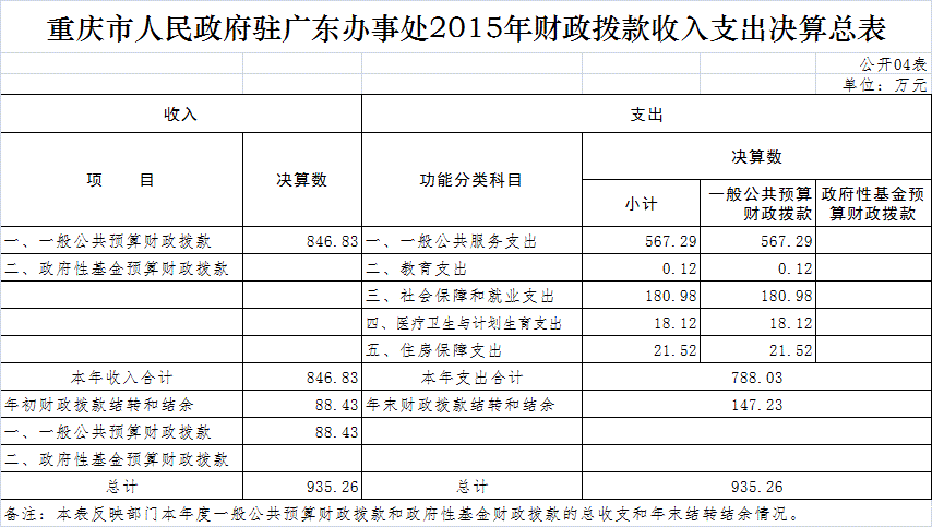 重庆市人民政府驻广东办事处2015年部门决算情况说明