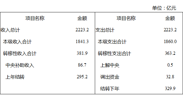 政府性基金预算。2014年全市政府性基金预算收入1841.3亿元,增长10.1%,为预算的106.7%,加上中央补助、上年结转等,收入总计2223.2亿元。全市政府性基金预算支出1860亿元,增长7.2%,为预算的91.3%,加上结转下年等,支出总计2223.2亿元。(见表3)