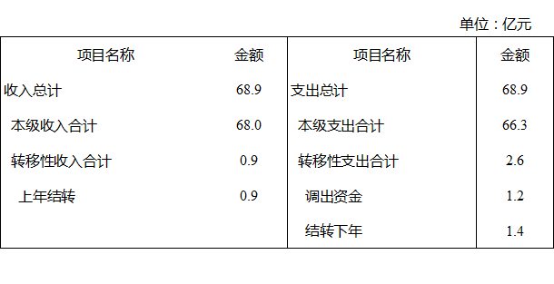 国有资本经营预算。2014年全市国有资本经营预算收入68亿元,为预算的119.4%,加上上年结转收入0.9亿元,收入总计68.9亿元。全市国有资本经营预算支出66.3亿元,为预算的116.4%,加上结转下年和调出资金等,支出总计68.9亿元。(见表4)